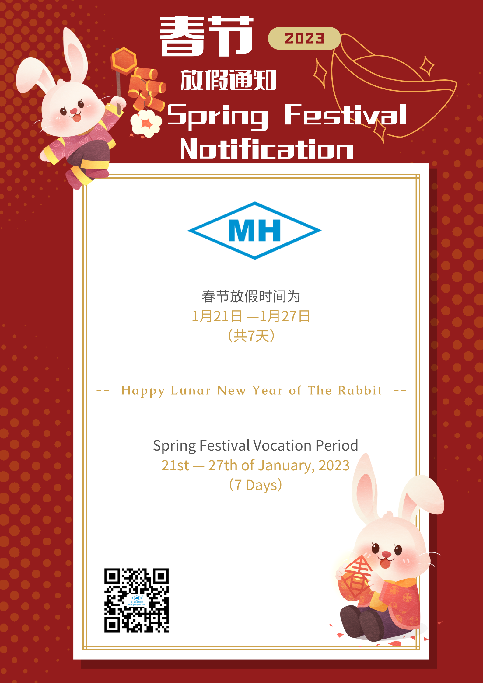 We hope you will all take the opportunity for rest and reflection over the holiday break, and please know how grateful we are for all you do for MingHui Company this and every year.
